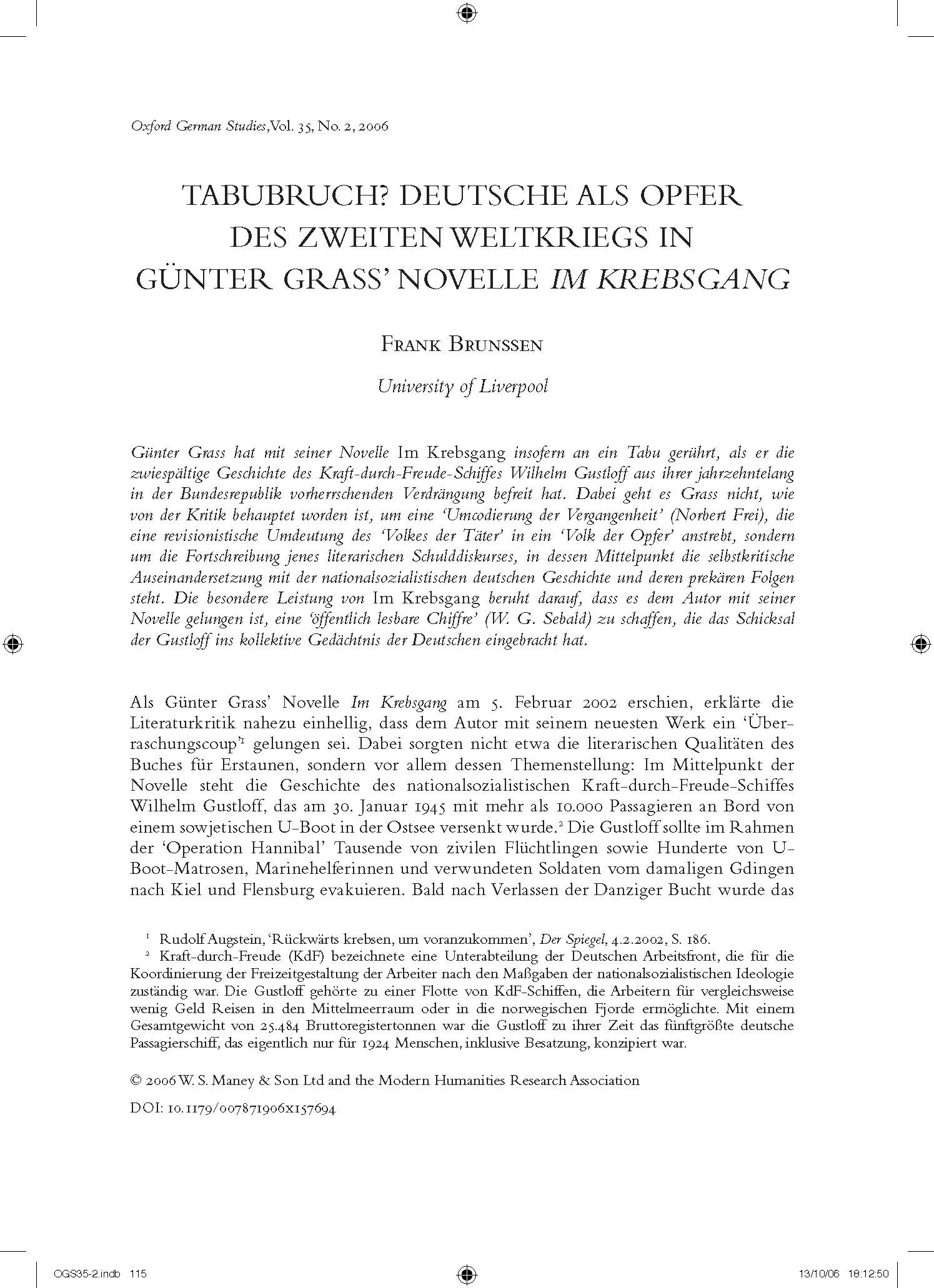 In der zweiten Vorlesung vom 29 September 2025 setzen wir uns mit dem Inhalt von Grass' Novelle "Im Krebsgang" auseinander und behandeln die Frage des Leidens der deutschen Zivilbevölkerung am Ende des Zweiten Weltkrieges. Der hier angehängten Aufsatz befasst sich mit der Frage der Flucht und Vertreibung der Deutschen in den östlichen Gebieten, des Untergangs des Schiffes Gustloff (30. Januar 1945 und der deutschen Schuld.
